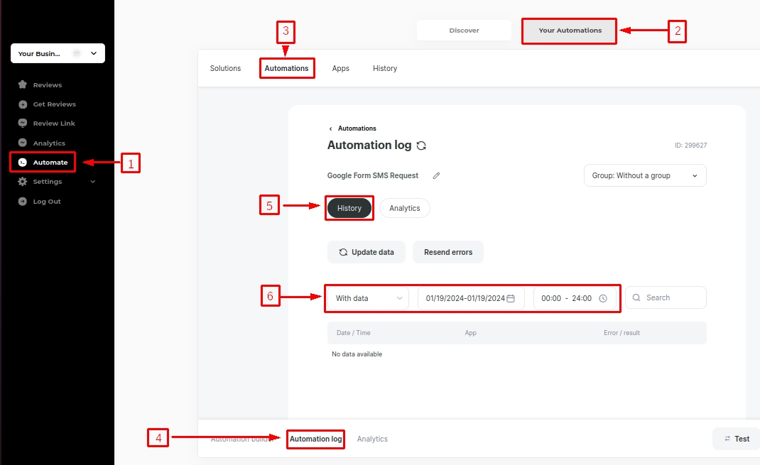 The logs of the automation are saved in the history section. You can access the automation logs by either:
