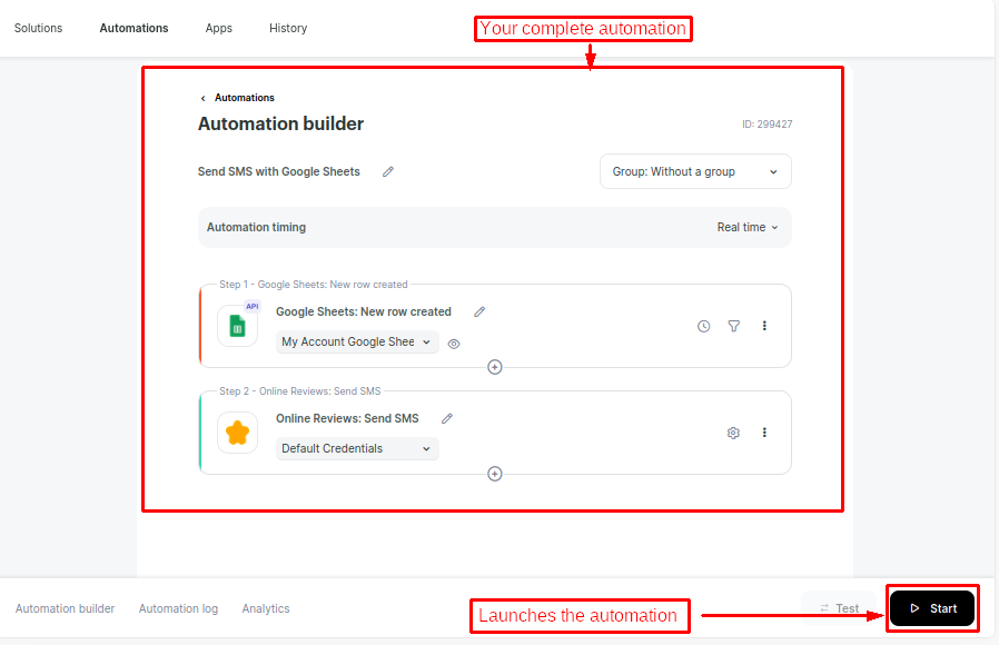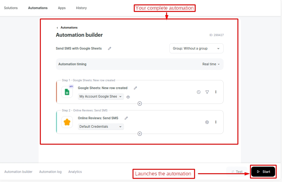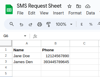 Link your Google Sheet file containing customers' details to the platform for automated review requests SMS. Maintain a Google Sheet file with 2 columns: "Name" and "Phone Number." Whenever new clients are acquired, populate the Google Sheet with their contact details.