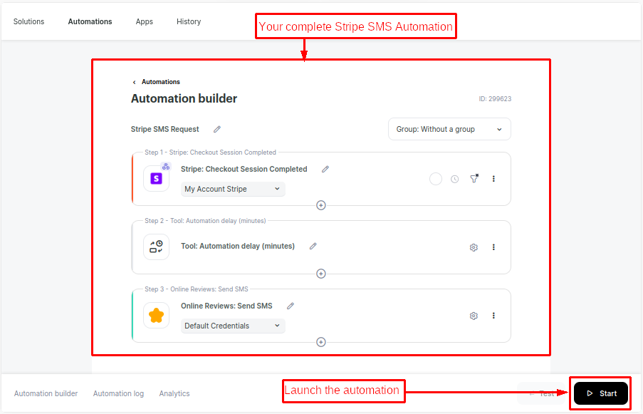 Rename the automation as you prefer, for example, "Stripe SMS Request."