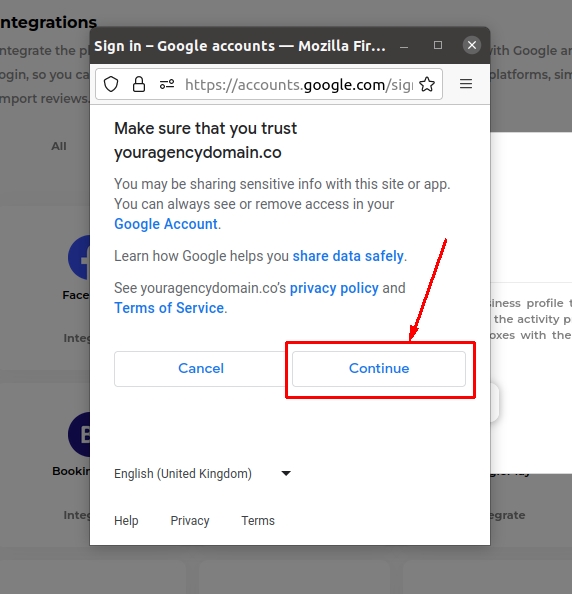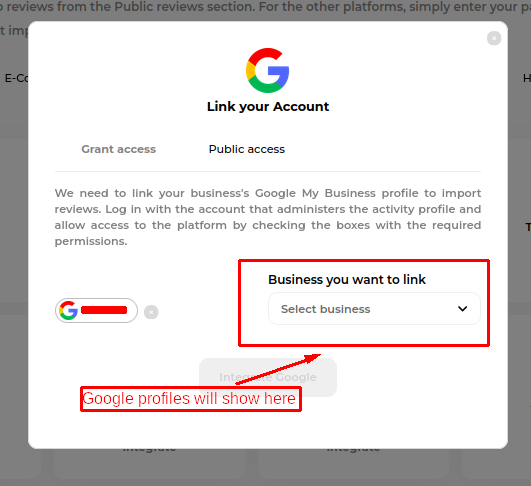 In the next window, select and integrate the intended Google profile. If not visible, the email lacks admin access.