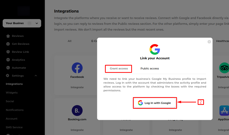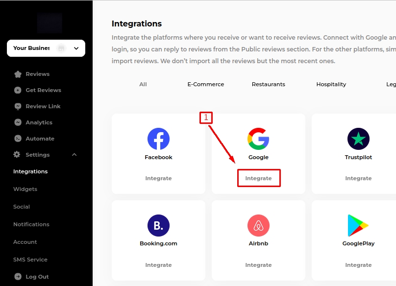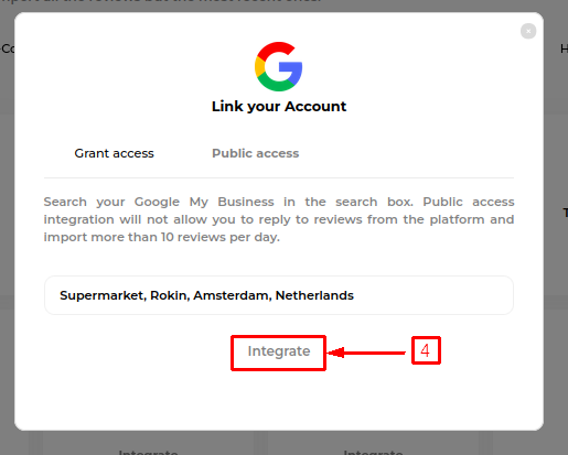 Click "Integrate," and upon success, a message will appear. Allow time for the app to import Google reviews.