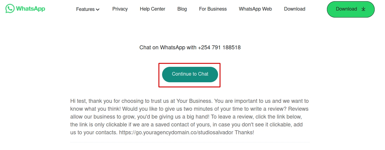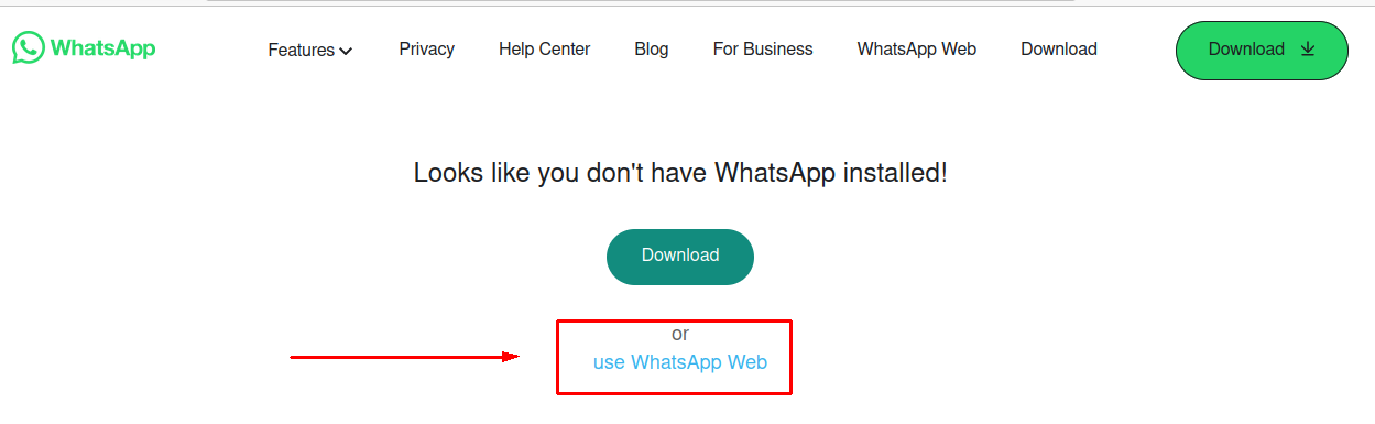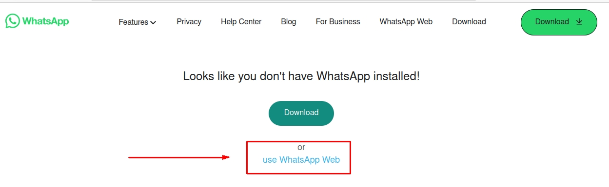 Choose "Use WhatsApp web." Clicking "WhatsApp web" will display a starting chat message.