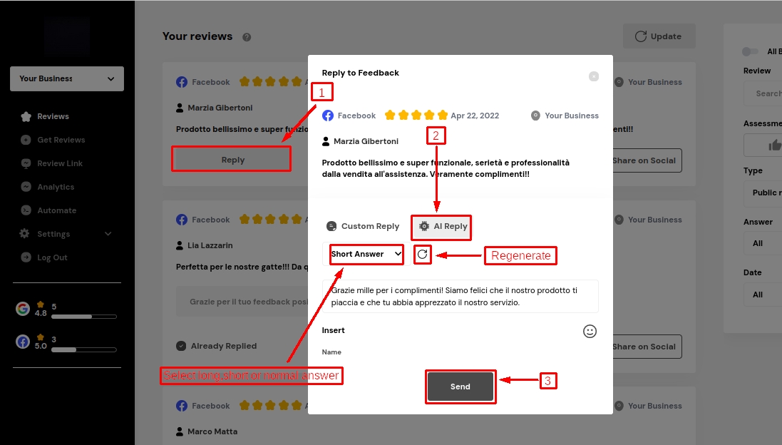 Utilizing cutting-edge AI technology, our platform generates responses for your reviews, streamlining your time and effort.