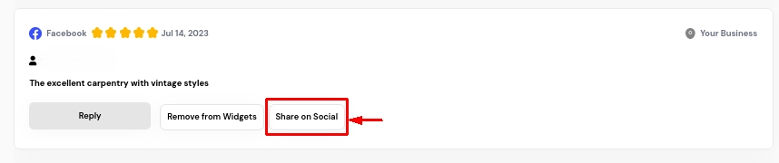 Initiate the sharing process directly from the Reviews section by clicking "Share on Social."